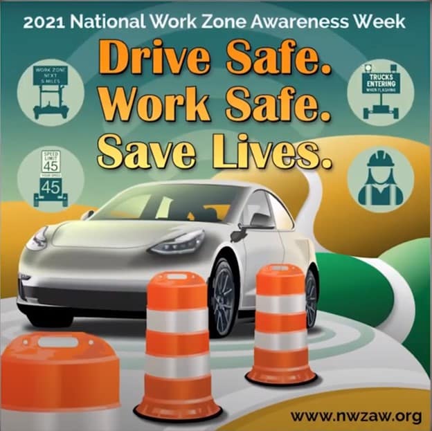 Each year there are thousands of crashes in roadway construction zones. National Work Zone Awareness Week (NWZAW), April 26th-30th, encourages safe driving through highway work zones. Help bring awareness and